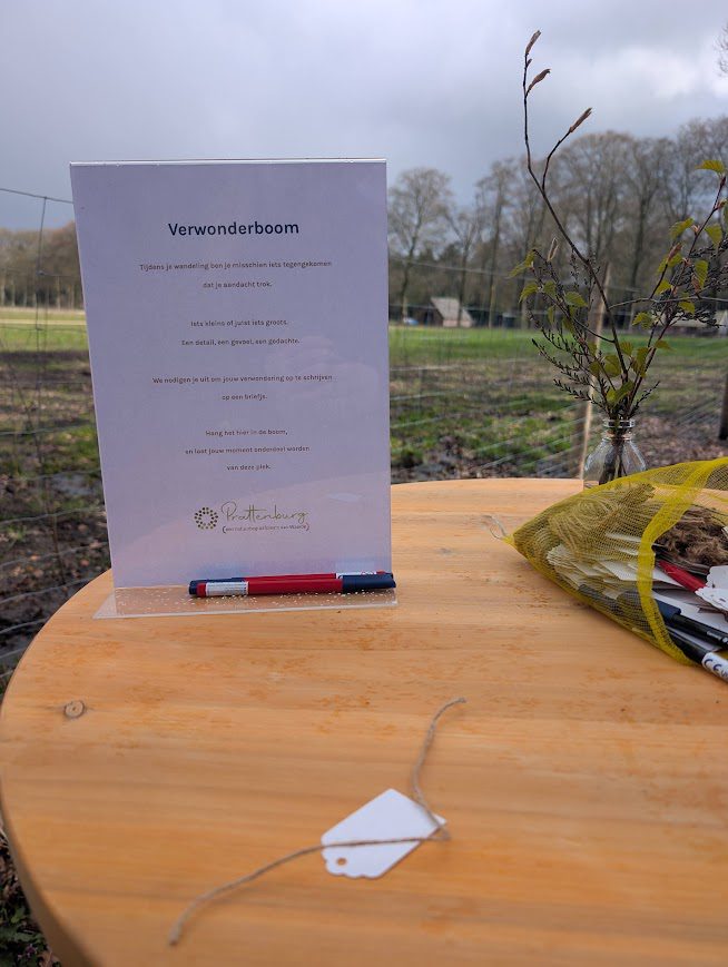De route eindigde bij de verwonderboom, waar deelnemers konden opschrijven waar zij zich tijdens de wandeling over hadden verwonderd. De briefjes kregen een plek in de boom, waardoor persoonlijke indrukken samenkwamen op deze bijzondere plek.