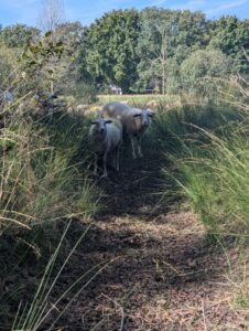 Natuurbegraafplaats Prattenburg kreeg onlangs bezoek van een bijzondere groep gasten: een kudde Veluwse heideschapen kwam langs om te grazen bij de vennen. Voor één dag vervulden de schapen hun rol als natuurlijke landschapsbeheerders. ’s Ochtends graasden ze bij het eerste vennetje, ’s middags bij het tweede. Zo kunnen wij het gras op een natuurlijke manier beheren, zonder machines te gebruiken. Dat is duurzamer en helpt de rust en openheid van het terrein te behouden.