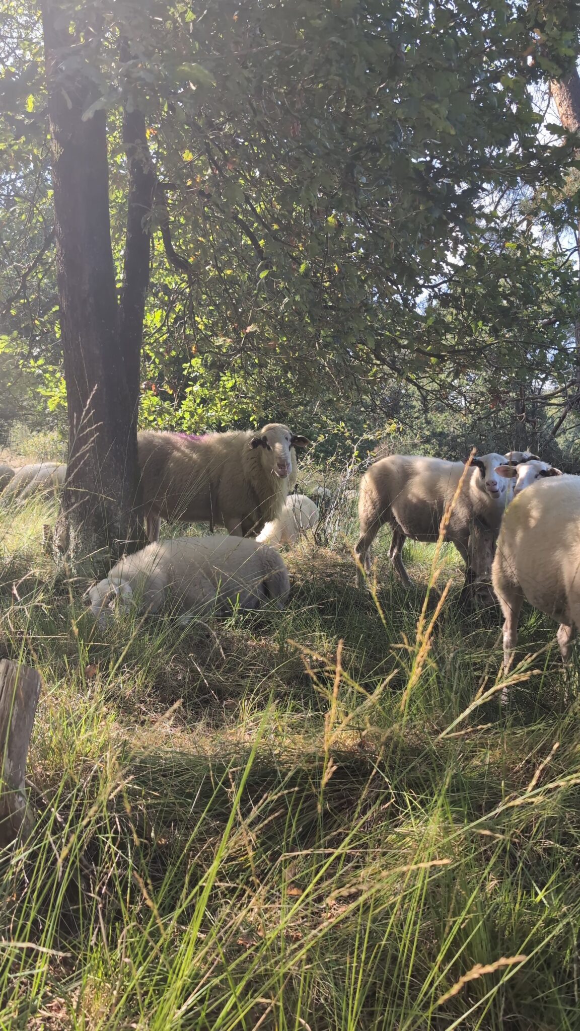 Het Veluwse heideschaap is een van de oudste en meest karakteristieke schapenrassen van Nederland. Ze staan bekend om hun robuuste, weerbestendige vacht en hun rustige, sociale karakter. Dit ras is speciaal ontwikkeld om te kunnen overleven op arme zandgronden en heidevelden. Ze eten niet alleen gras, maar ook heide en kruiden, waardoor ze bijdragen aan een gevarieerd en gezond ecosysteem. Door hun selectieve begrazing ontstaan er open plekken en variatie in de vegetatie. Dit stimuleert de groei van verschillende kruiden en struiken, wat op zijn beurt weer insecten, vlinders en andere dieren aantrekt. Ook vogels profiteren van de aanwezigheid van de schapen, omdat ze op de beestjes afkomen die op het graaswerk leven. Op deze manier helpen de schapen de biodiversiteit in het gebied op een natuurlijke manier te versterken.