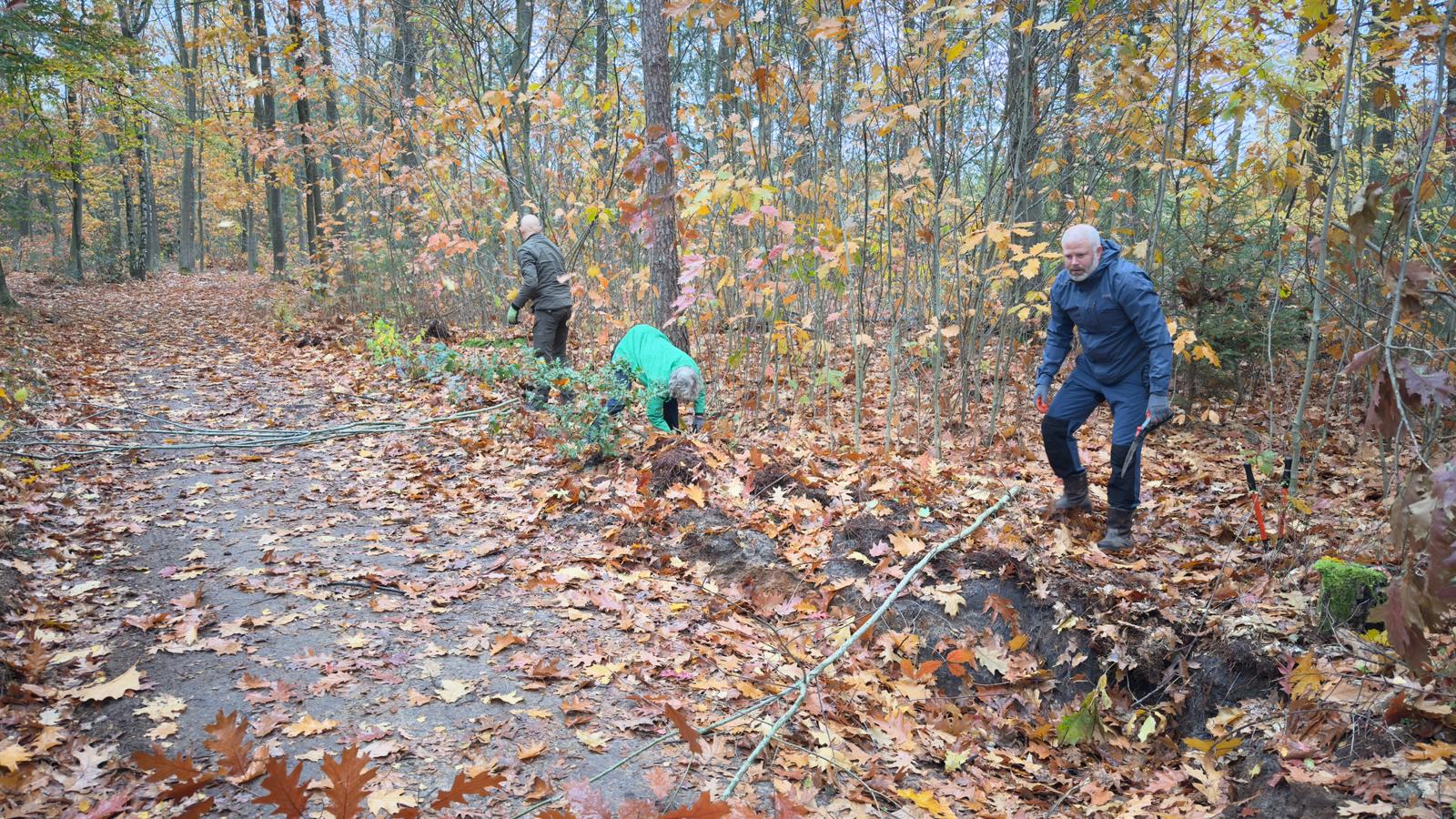 Tegen de koffiepauze besloten we, vanwege de weersomstandigheden, de werkzaamheden te staken. Het weer dwong ons te stoppen, maar dat deed niets af aan de energie, positiviteit en fijne sfeer die de ochtend kenmerkten.. We kijken met enorm veel waardering terug op deze dag: jullie inzet, humor en doorzettingsvermogen maakten het bijzonder.